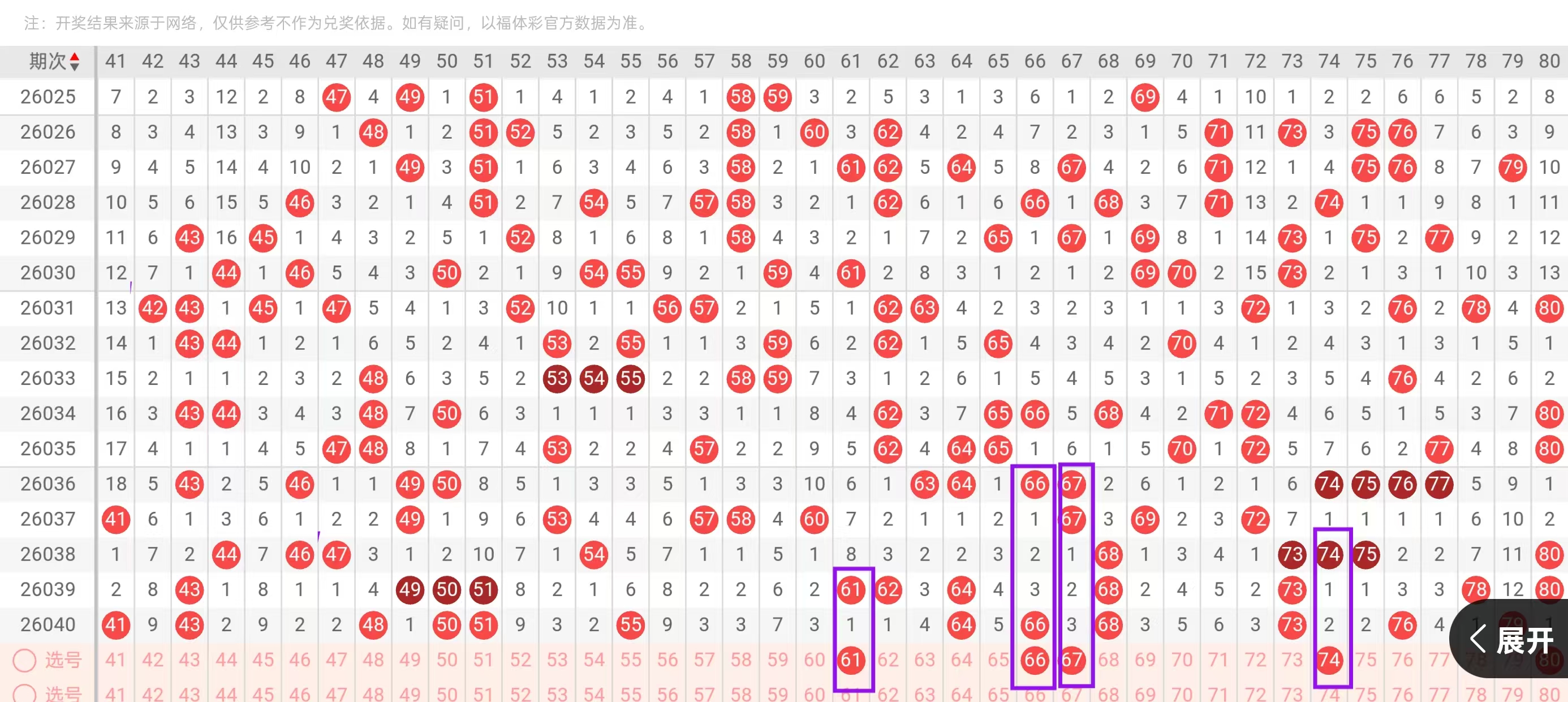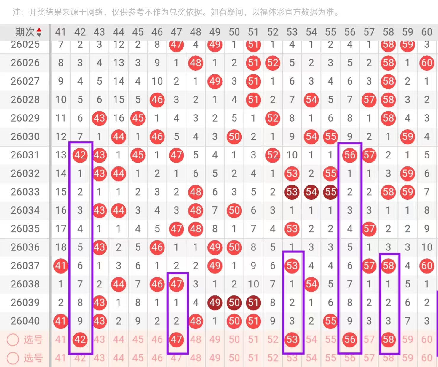 三区41-60:三区间,上一期回补了6个号码的下落,从近期三区间号码下落点位来看,呈现出了由温区转为热区的状态,今天我们要重点关注的是三区间的持续回补,在4头首先我们要重点关注的是42-44和46-47的一个回补点位,今天这里可用42-47和44-47的一个搭配回补,回到5头位置,这里值得我们重点关注的是50-55同开和51-55同开重码的一个回补点位,和对子空3-57-58的一个回补点位,今天这里可用51-58和55-60的一个搭配回补,这里要注意的是中部位置开出连下落的可能。