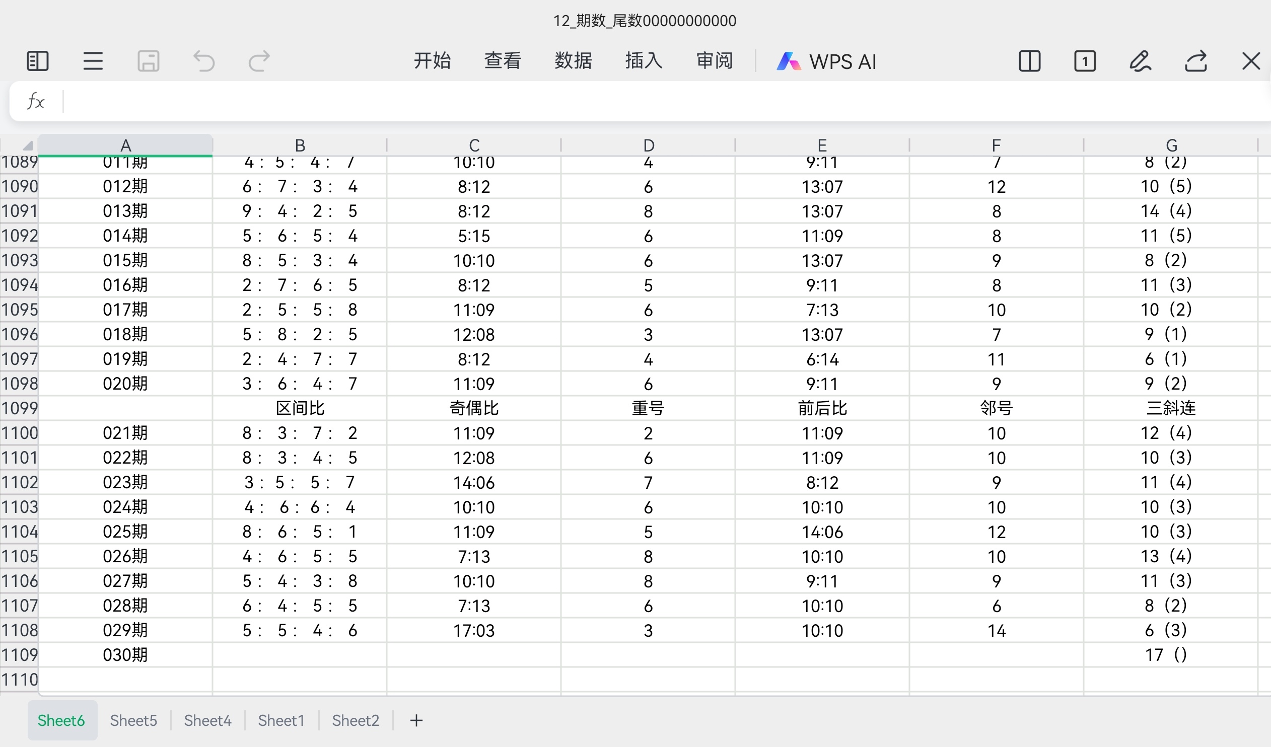区间比5:5:4:6 奇偶比17:03 重号3个