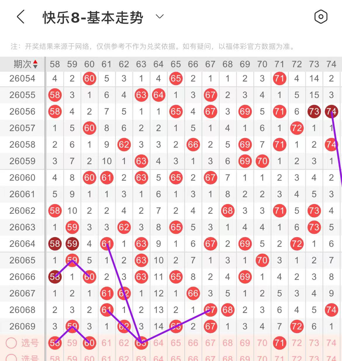61-70区:本区间上期开出了三个号码,从号码走势图上看,该区连续走热,本期注意出号个数减少的可能,在选号上需谨慎,本期有出号走势的号码有63号,多重走势形态出号,后半区可防范67.68回补一码。