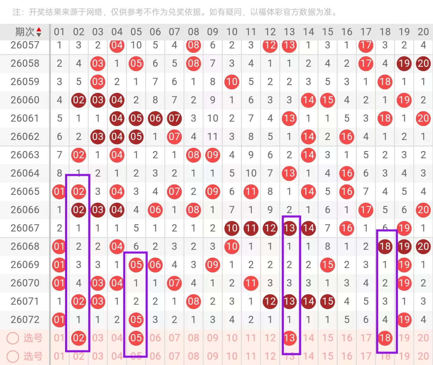 一区01-20:一区间,上一期回补了三个号码的下落,从近期一区间号码下落点位来看,呈现出了由热转冷的形态,今天我们要重点关注的是一区间空缺位置的下落和重码的一个回补,在0头首先我们要重点关注的是01-05同开重码的一个回补点位,和09-10的一个下落点位,这里可用01-09和05-10的一个搭配回补,回到一头位置,这里值得我们重点关注的是4连下方空1的一个回补点位,13-15-2-1的选择值得我们重点关注。其次,在尾部位置,我们要重点关注的是18-20的一个回补点位,今天这里可用13+18和14-20的一个搭配回补。