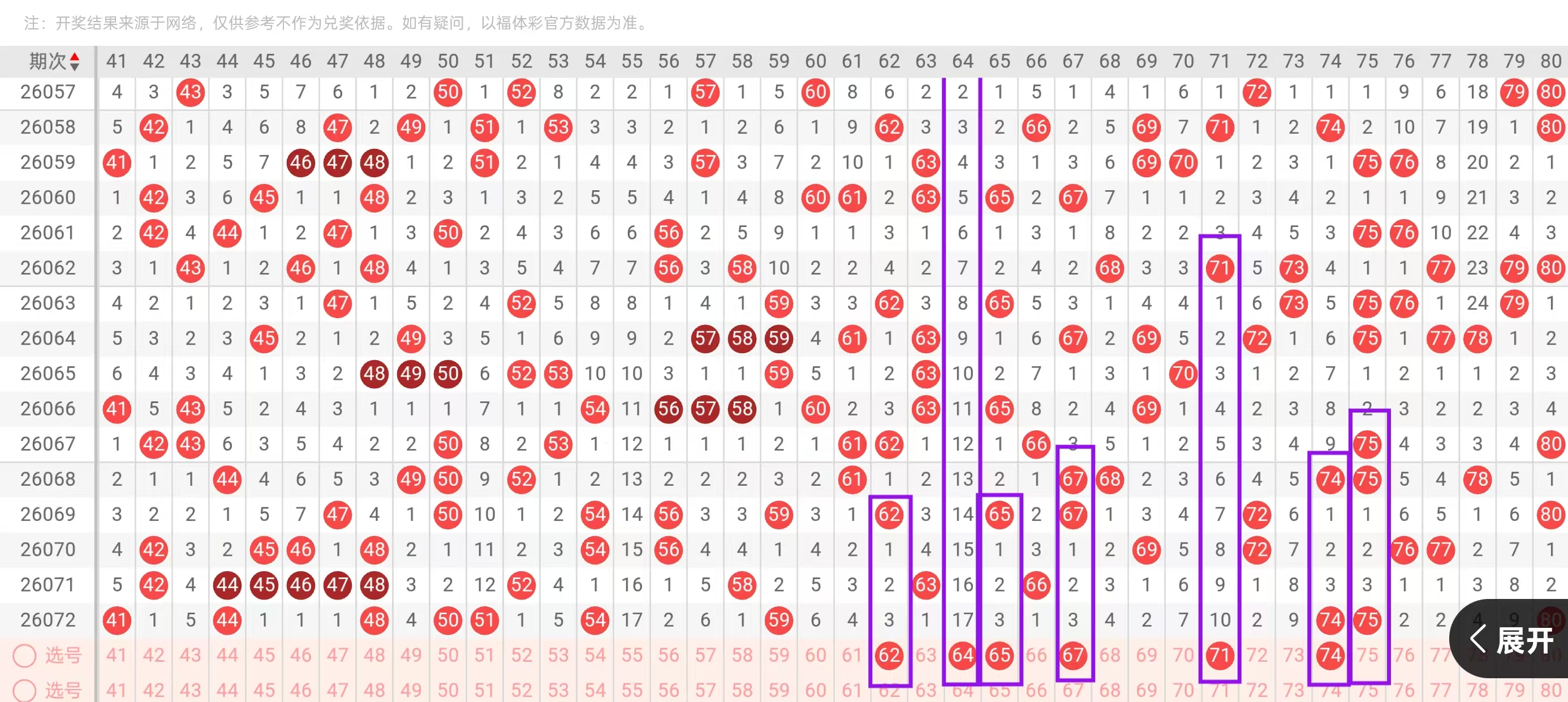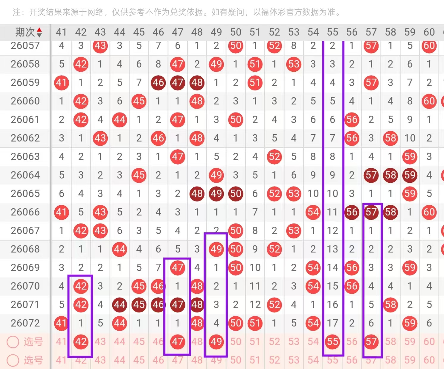 三区41-60:三区间,上一期持续走热,回补了7个号码的下落,从近期三区间号码下落点位来看,连续走热了4期,遗漏,今天我们要重点关注的是三区间空缺位置的下落和对子下面的回补,在4头,首先我们要重点关注的是42-45的一个回补点位和47-49的一个下落点位,今天这里可用42-49的搭配和47-45的搭配回补,回到五头位置,这里值得我们重点关注的是,50-51同开重码的一个下落点位和55-57的一个回补点位,今天这里可用50-55和51-57的搭配回补。