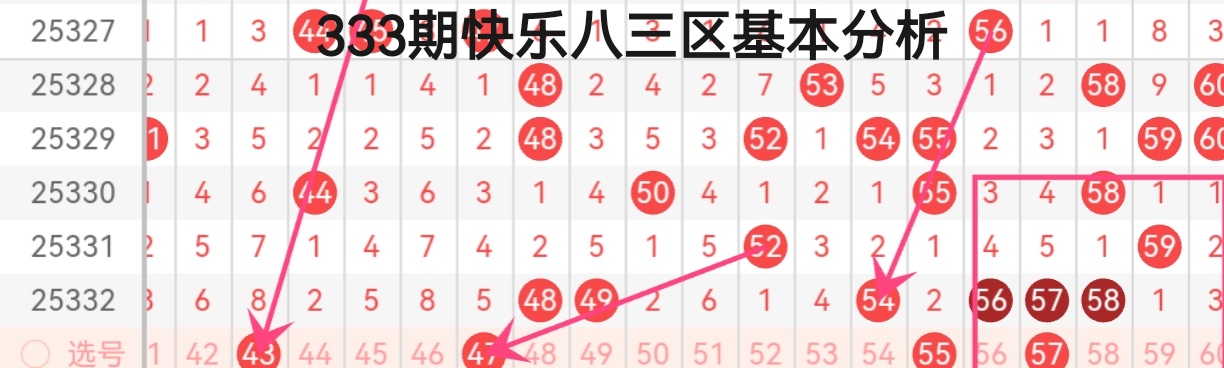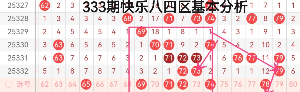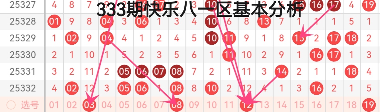 今天咱们用“象限双码分析法”进行333期快乐8的分析: