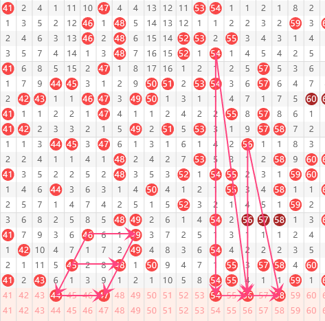 三区分析:【41-60】(走势图标注号码非小黄车大底,请谨慎参考,具体思路将在直播间分享讨论)