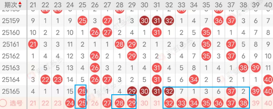 第二区间的走势分析:第二区间上期开出了八个号码球!主要的落号点位在二区间的中间位置和后半区的凤尾位置。根据二区间的走势规律!二区间方向一主看25 29 30这三个号码球点位的落号!防守25 29 30有1-2码继续走重的可能。如果走重,边码回落的机会就很小。如果没有重码,就关注25 29的分边码24 27 28 30这几个号码球。方向二后半区首先关注31 32 37 39 40这几个号码球!有2码继续走重的可能。再关注它们的边码35 38.应该有机会落下。