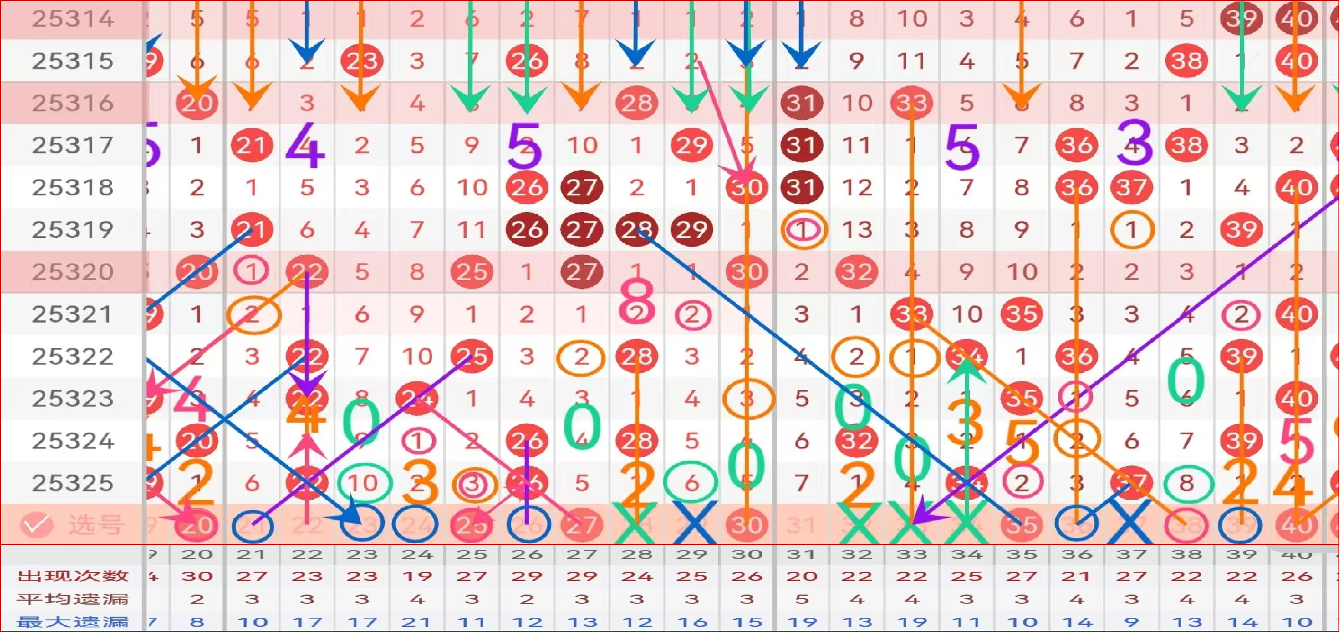 区间推荐主做号码25 27 30 35 40  防守号码21 24 38;