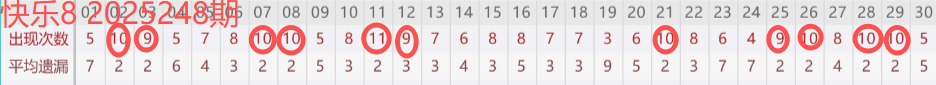 快乐8热号选择标准参考图(以30期为基准)所圈即为部分热码示意图