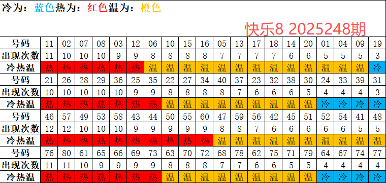 通过科学的冷热号分析,我们能够在快乐8游戏中建立更系统的选号策略,但请保持理性心态,享受游戏过程而非执着于结果。愿这份分析能为您的快乐8之旅提供有价值的参考!