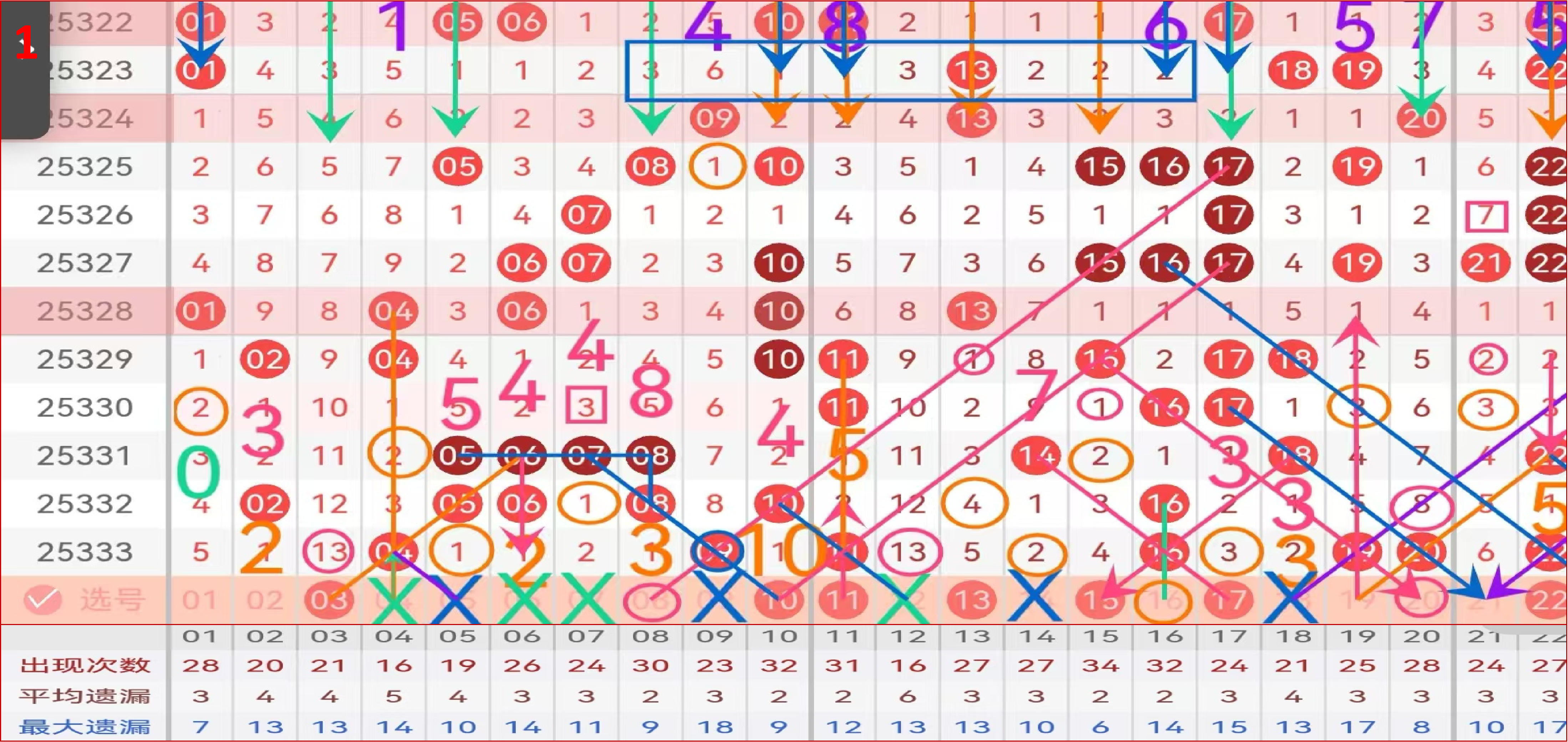 一区间推荐主做号码:03 10 11 13 15 17; 防守号码:01 08 16 20;