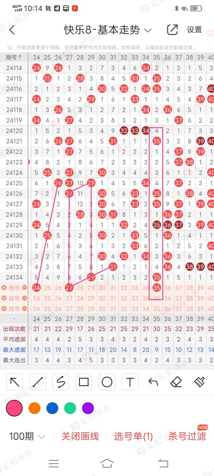 本区间上期只开出29、35两码,大有走冷迹象,所以在本间选号上还是建议大家悠着点,本区间虎心胆看好24、27、35三码。