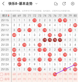 我把80个号码按照遗漏间隔分为8个区,0区是上期的开奖号码,1区就是遗漏1的数字组合,依次类推,第七区为大于6的数字组合。简单的结构,可以提高中奖的概率。灵活的运用,每个区可以选0到3个号码。我是彩虹号作者洛昇,请大家多关注支持。