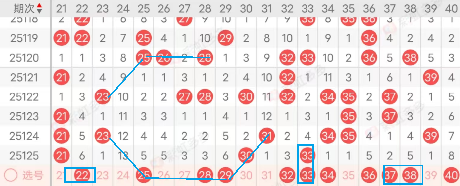 第二区间的走势分析:第二区间上期开出了三个号码球!落号点位主要在二区间的龙头和中间位置。根据二区间的走势规律!今天的二区间我们首先关注前半区21到30之间号码的回补!主看25 28 29防24 26 。然后关注29到33之间的号码!要么偶数!要么集中落号。最后关注32到40之间号码回补!应该不会太多!主看32 33 34 36 防37 38 40。
