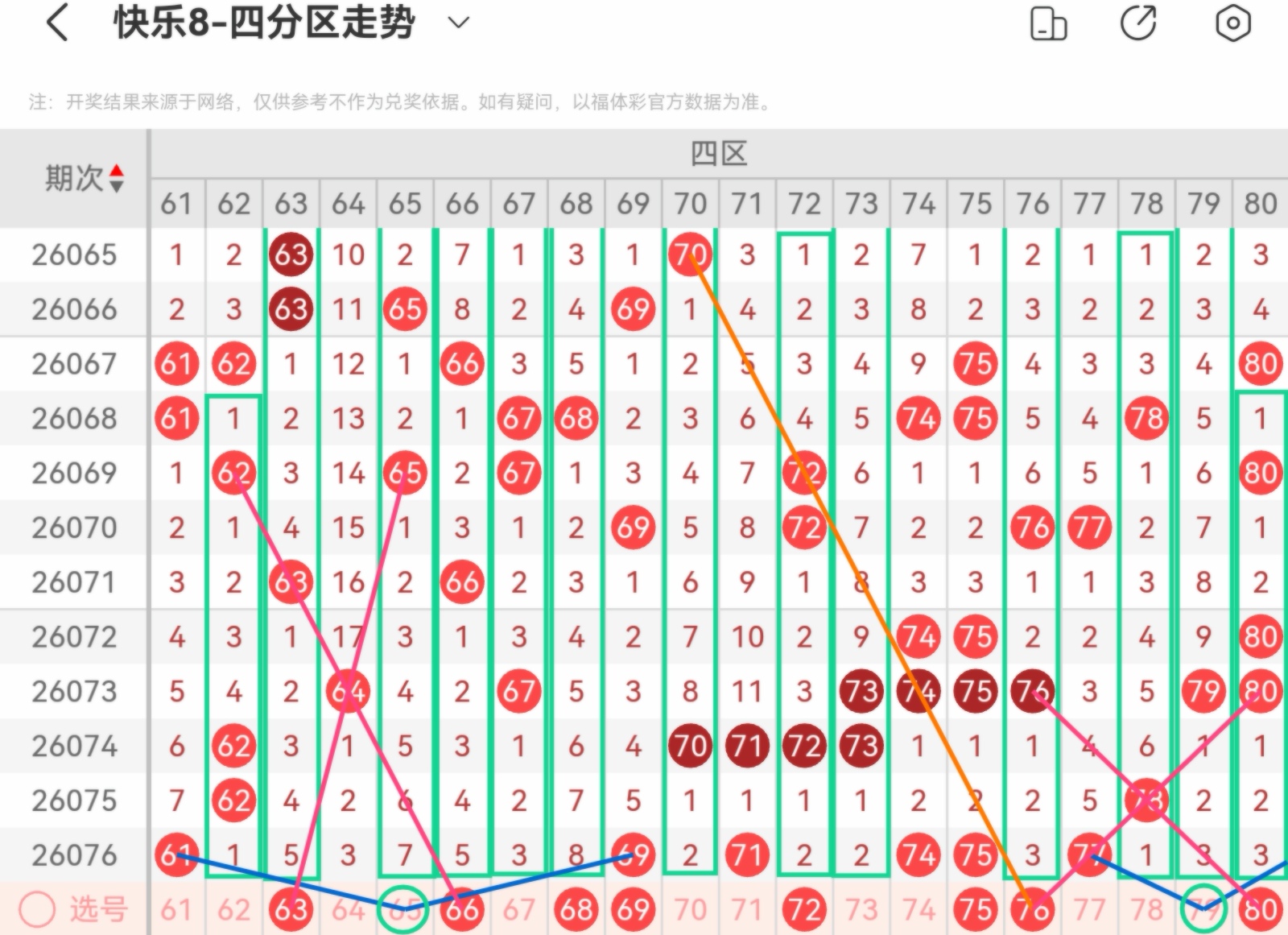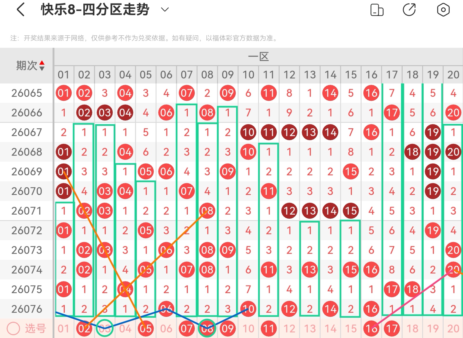 下面我为大家分享一下快乐八第26077基本走势分析: