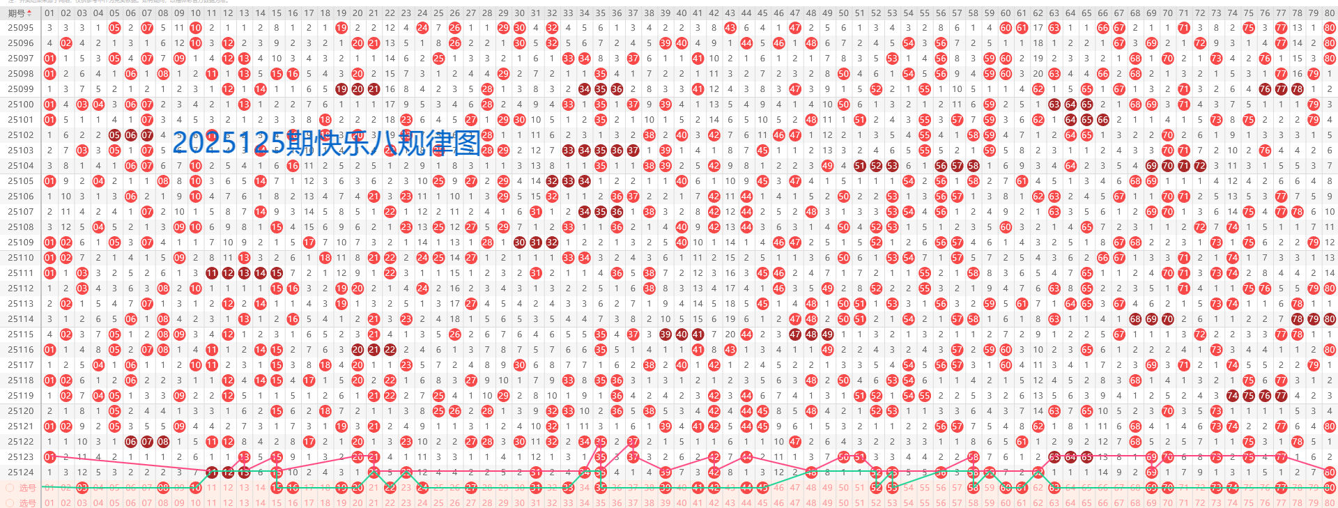 这快乐8有点小长,一般看不全,作者把关联号和上期拉对的号都划了出来,方便大家查看。