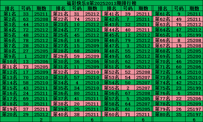最后再把号码分为五区:一区01-16号、二区17-32号、三区33-48号、四区49-64号、五区65-80号,理论上每个区每期应该开出4个号码,2025213期五区比例:2:6:4:4:4