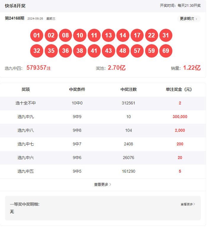 快乐8第24148期的开奖结果:04 06 07 09 13 15 18 19 25 26 30 43 46 48 53 56 60 63 76 79