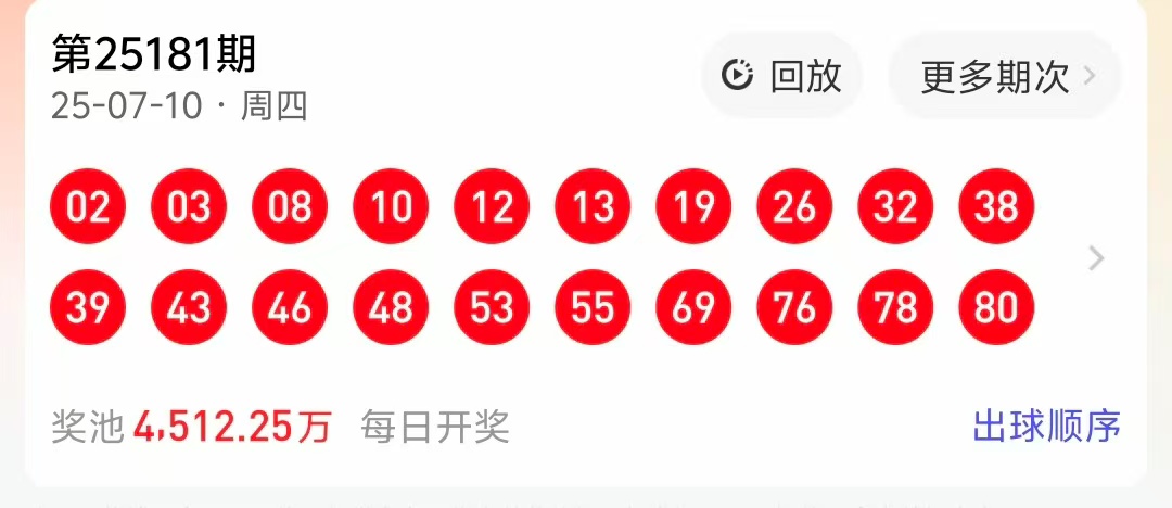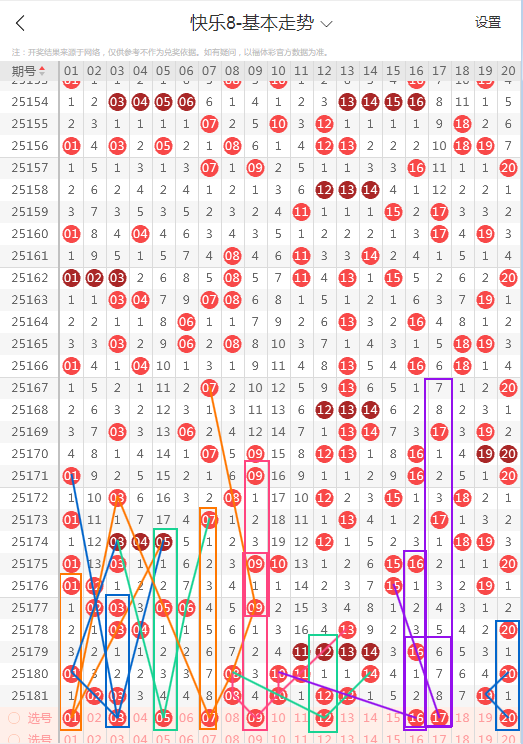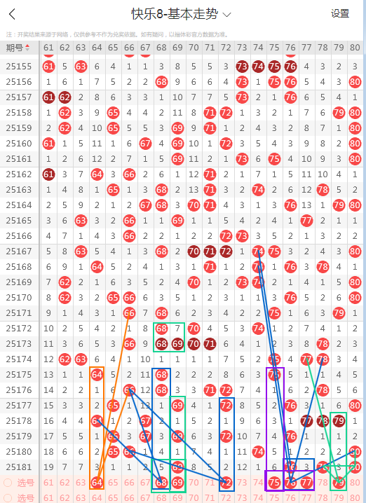 財星快乐8第25182期走势分析 本月小车胆码连中 本期有信心冲刺四胆