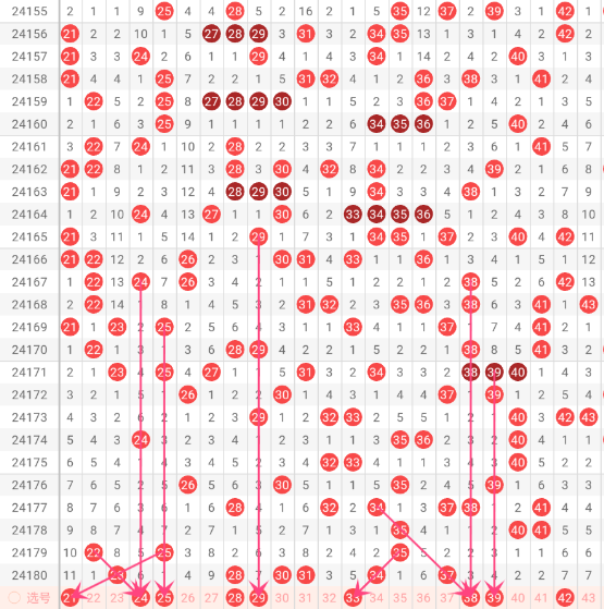 上期第2区间开出23 28 30 31 34 37 这3个号码,今天尾姐推荐21 24 25 28 29 33 38 39。。21 24二选一,38 39二选一。