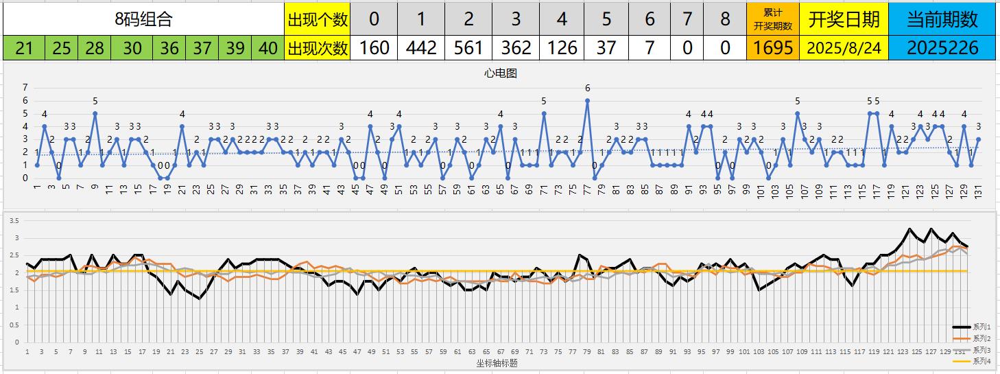 先来看一下8码组合(21,25,28,30,36,37,39,40)的心电图,如下: