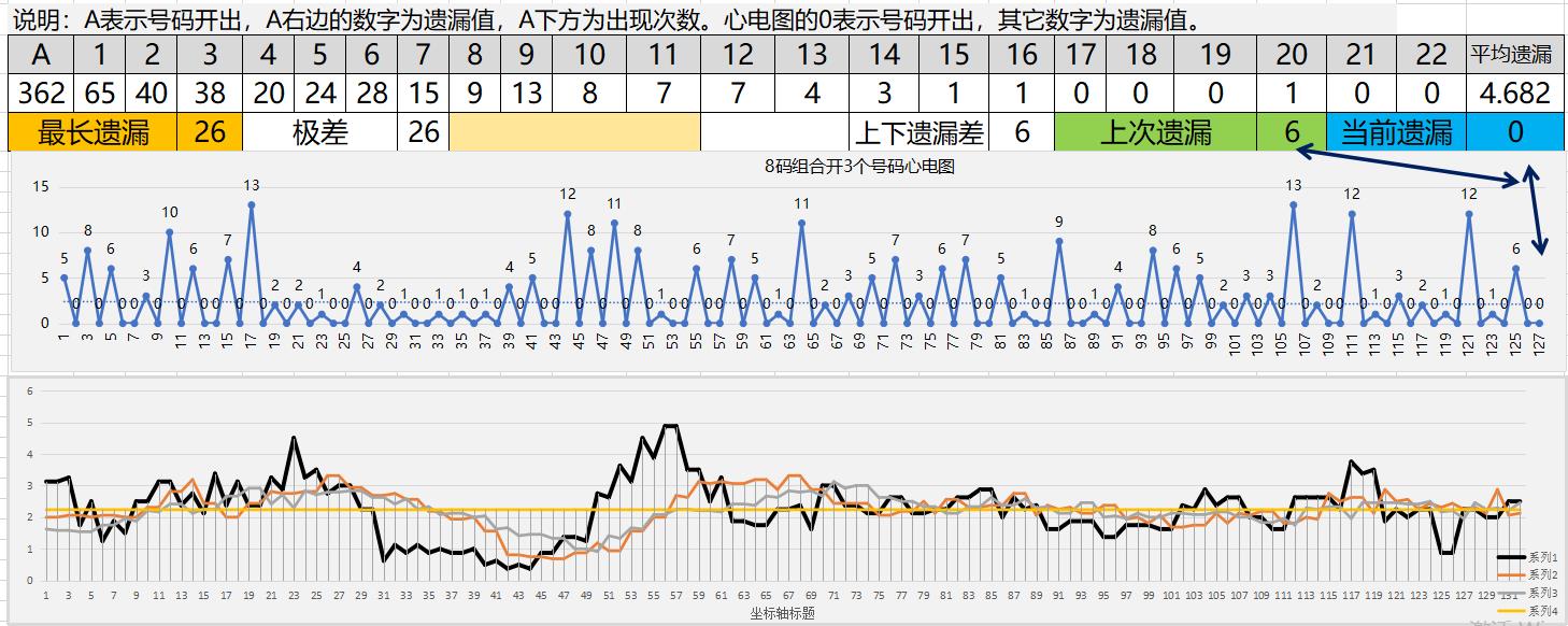 再来看一下这8码组合开任意3个号码的心电图,如下: