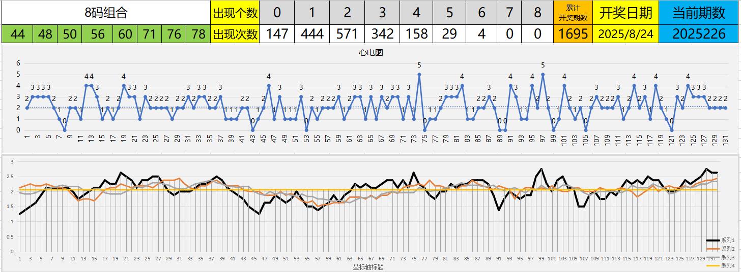 再来看一下8码组合(44,48,50,56,60,71,76,78)的心电图,如下: