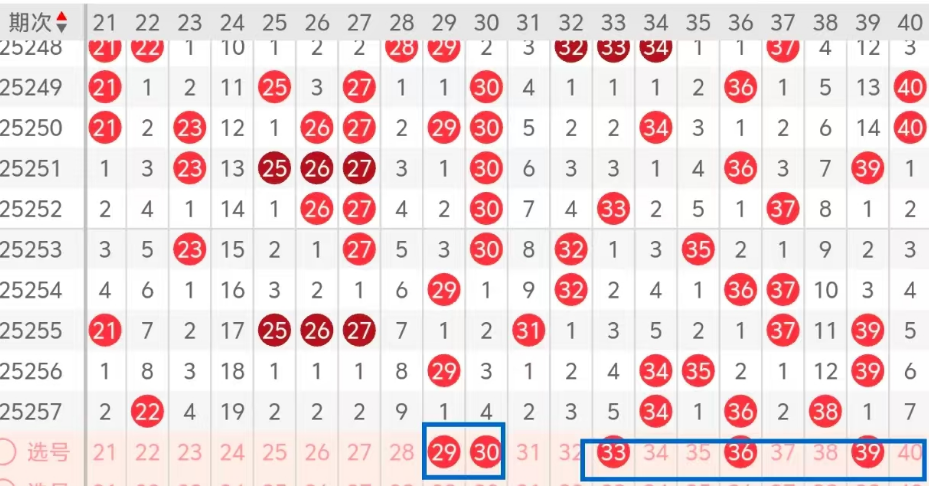 第二区间的走势分析:第二区间上期开出了四个号码球,主要的落号点位在二区间的后半区,走出了四偶的形态,二区间的落号转向了后半区,今天我们在选号时主看后半区的号码回补,首先关注29 30这两个号码球的落位,至少有一码开出l29走出了隔一期的三连走势,30是热码的回补,再看36的重码,以及分边码33 39的回补,这里走出了3-6-9为的形态走势!注意29 33 36的组合,可以打个复二,33 39都是边码的回补,特别是39和37的走势形态一样!大家参考!
