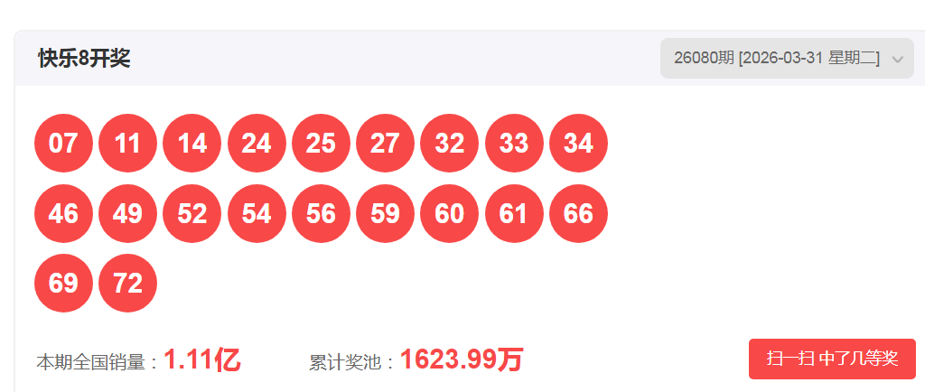 “专注快乐8,开心快乐吧!”您好,我是九尾锦鲤,有幸与您在这里相遇。上期(快乐8第2026080期)分析和推荐部分正确!今天组号上会继续努力!小车方案已精选优化,期望对您今天的选号、组号有所帮助。下面是我关于快乐八2026年第081期的走势研判分析及精选推荐。