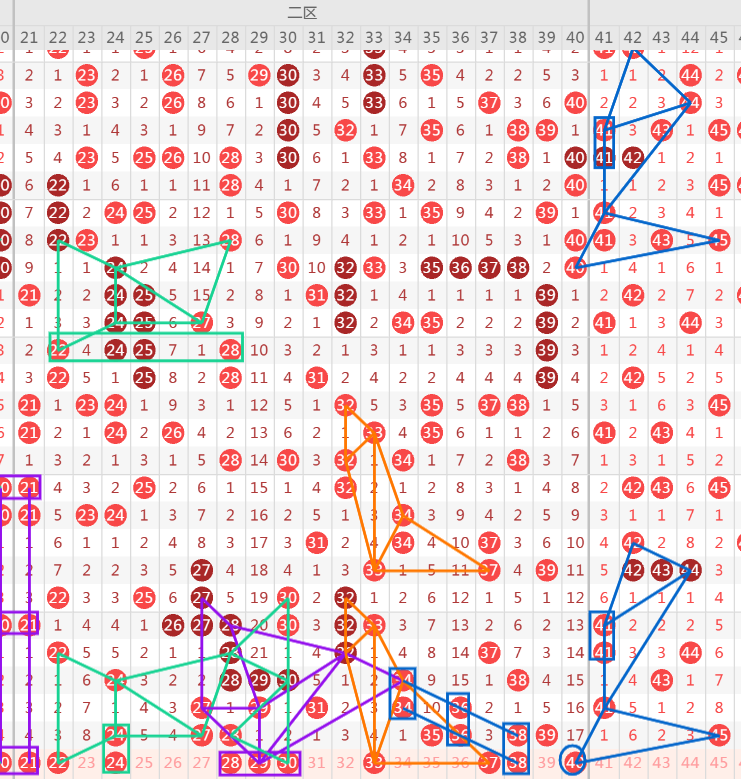 46:遗漏七期的温冷号,45的分边回补号码是有机会下落的.