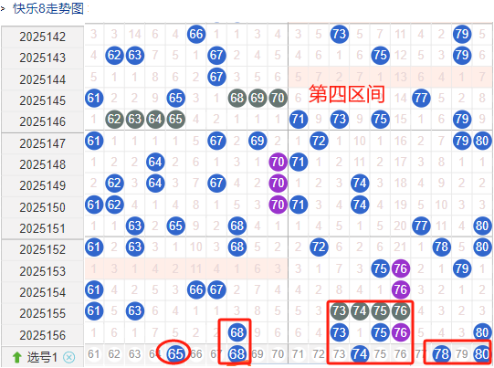 上期四区间开出了5奖号(68.73.75.76.80)上期的四区开5个奖号呈现了一个稳定的趋势,开出的奖号6头回补1码,7头开也是回补了3个,要是按照现在的走势的话本期应该开出的奖号会应该会可能呈现一个不变的趋势,先来看号码65在近 30 期内属于比较规律的号码,近期出现频率相对还算稳定,偶尔会间隔多期后出现一次,走势近期间隔较稳定这个号码要注意防守,号码68具有一定的间歇性活跃度较一般比如有时会间隔 5到4期就再次出现,也有时会间隔多期,近期整体出现频率较一般,近期还是要关注的.号码74活跃度近期比较一般,有一定的间歇性。活跃度近期不算稳定,整体走势有一定的波动性。