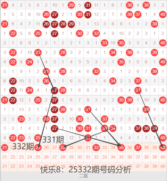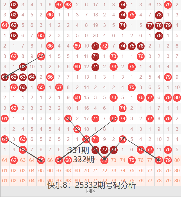 回顾25331期开奖号码:05 06 07 08 14 18 22 23 25 31 40 52 59 63 71 72 73 76 77 79 ,最近一段时间号码爆区几率特别高,目前已经连续多次出现爆区热开的情况,爆区之后基本上都是迅速回调,转换至其他区间继续暴热,大家若是能抓准区间,或许有很大的机会,但是号码的变盘规律是非常的快,很难把握,个人建议谨慎选择,不要 盲目的去操作~~