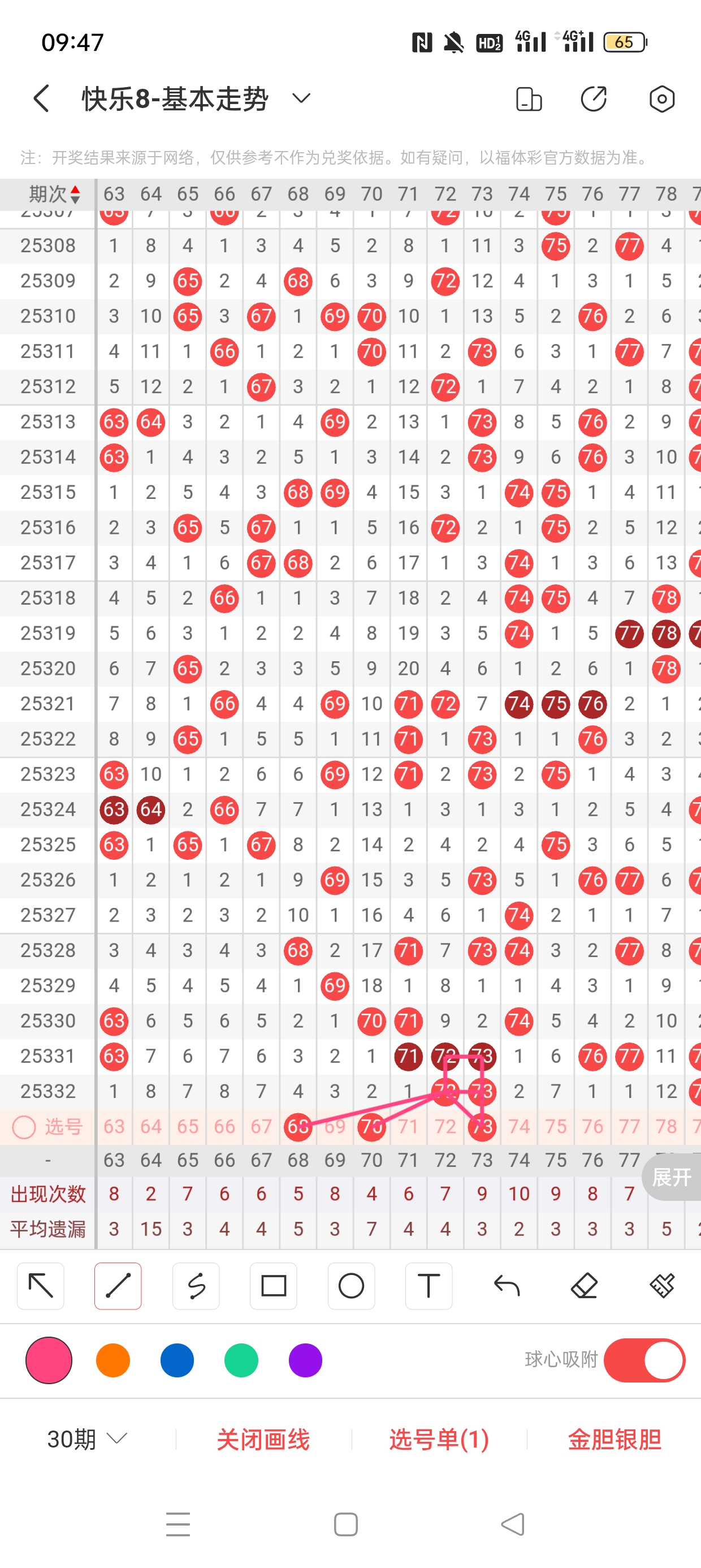 6、分区法:快乐8共分为4个区,一区:1-20,二区:21-40,三区:41-60,四区:61-80。