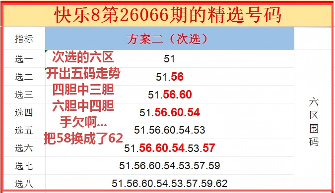 快乐8第26067期:上期次选的六区,四胆中三胆!