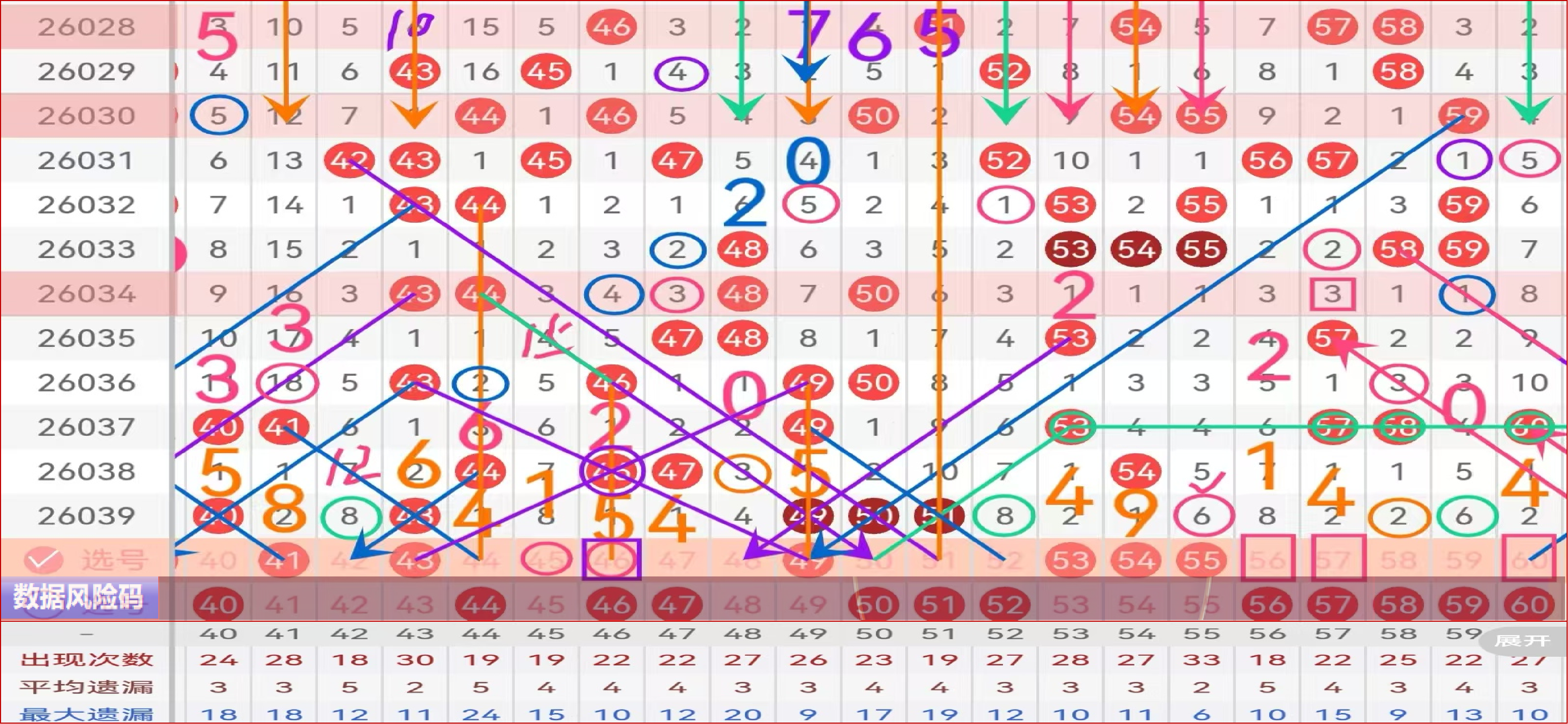 三区间上期出了4个号 码,温态开出;大遗漏空二的41,高数据,第九次走遗漏2点位,可主防;形态码42,犹豫数据关系,九哥放弃了这个空位三斜连码,去看了43的走重,高数据码,走重属性8次;49 50 51这里,推荐49走重,分边48做防;5字头的53 54 55三连继续重点防守,,5字头的其他号码球建议观察是宜;