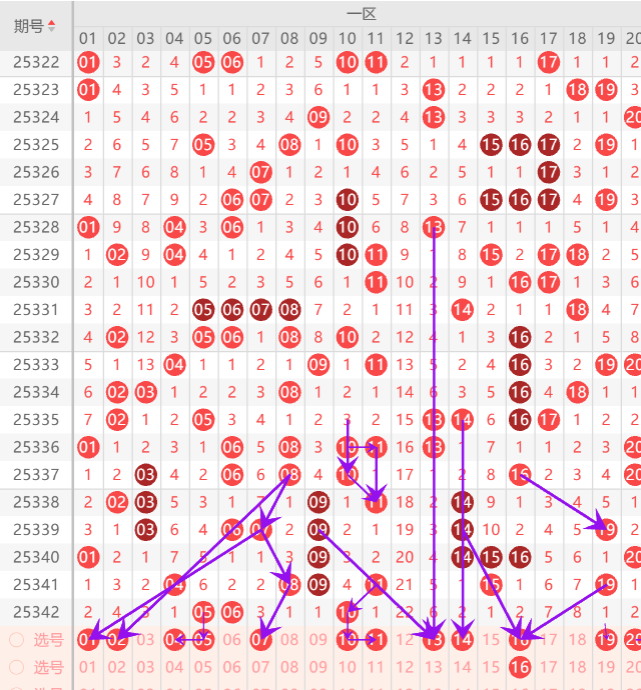 一区在近期的走势分析,近期一区间是温冷形态,上期一区间再次开出了3码,而且上期区间开出的形态是孤码分边和空位回补走势,上期小妹在文中布局到了3码开出,那么本期一区间重点关注的形态是重码走势,隔期回补,对称形态,那么本期的重码上注意05.06.10中布局一码走重机会,而隔期回补上注意04.11.19中参考1-2码回补机会,至于对称形态上注意防守07.11.13.14.16.20中布局1-2码开出机会,可选择一码订胆机会,上期重点关注在孤码分边上开出了一码,那么本期重点关注隔期回补上参考机会,如图所示。