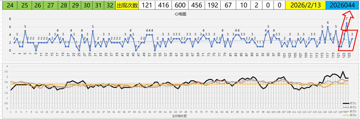 今天来关注一下9码组合(24,25,26,27,28,29,30,31,32),心电图如下: