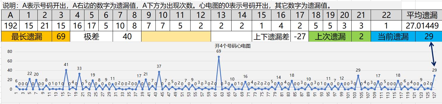 当前遗漏29,表示已经有29期未开4个号码了。从遗漏69开出后开始的本轮长周期,期间最长遗漏为29,且只有1次,是第2025139期,至今超过了250期,也就是将近一年都没有这么长时间不开4个号码了,封顶作用力强。而且上次上周期起点遗漏69,也是历史极值,中这种破记录的遗漏值也是较少出现的,个人以为短期内9码开4个行情就会出现,不会拖很久的。