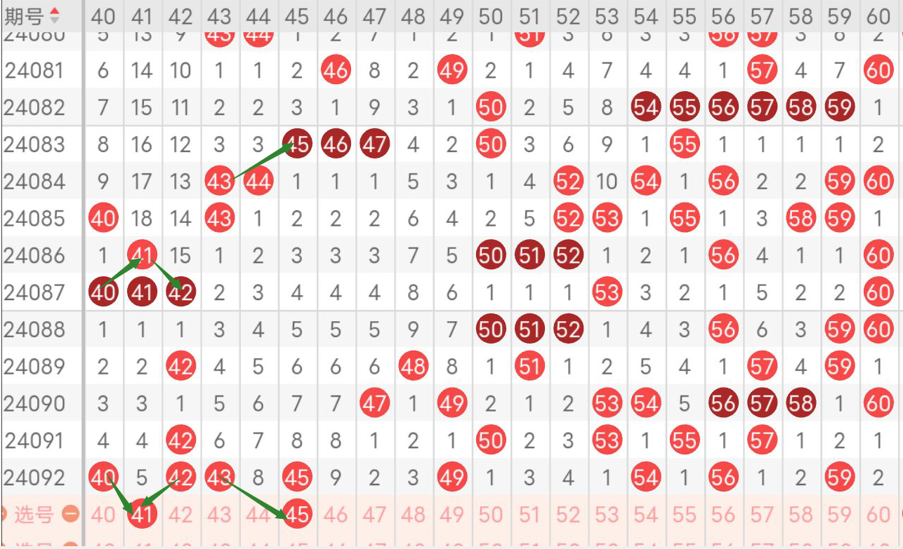 快乐八093期三区分析:本区域看好二码41 51号,41号冷码走势,近期比较看好,上期出现相邻号码40 42号,形成夹击走势,左上出现大斜连走势,右边型相邻号码42 43号,按以往走势两边形成走位的号码出现率较高,本期可以考虑一下,51号看近期走势热码形式较好,近期区域性热码强盛,本期看好单码下落走势。