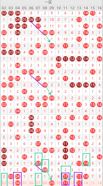 边号2 5 9 10 12 15出一码,重号1 3 4 11 13出一码,形态上9是错位回补,跟上面一样,可以用,上图已勾画,遗漏值隔2期号出多期,本期2 7二出一,优先7,重号缩小范围 4 11 13出1码,遗漏值5 8二出一,本期一区有6尾,6 16二出一,本期12 13有机会出连号,10短期最大遗漏7期,本期第6期,防10,关注五码4 7 9 13 15防6,一胆4 双胆4 6