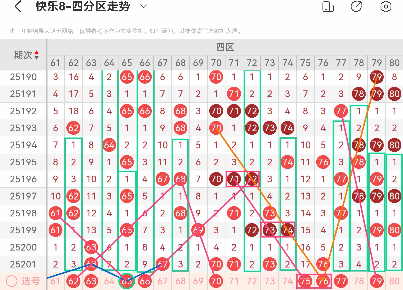 下面我为大家分享一下快乐八第25202基本走势分析: