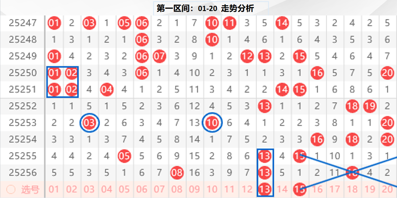 一区分析:【01-20】(走势图标注号码非小黄车大底,请谨慎参考,具体思路将在直播间分享讨论)