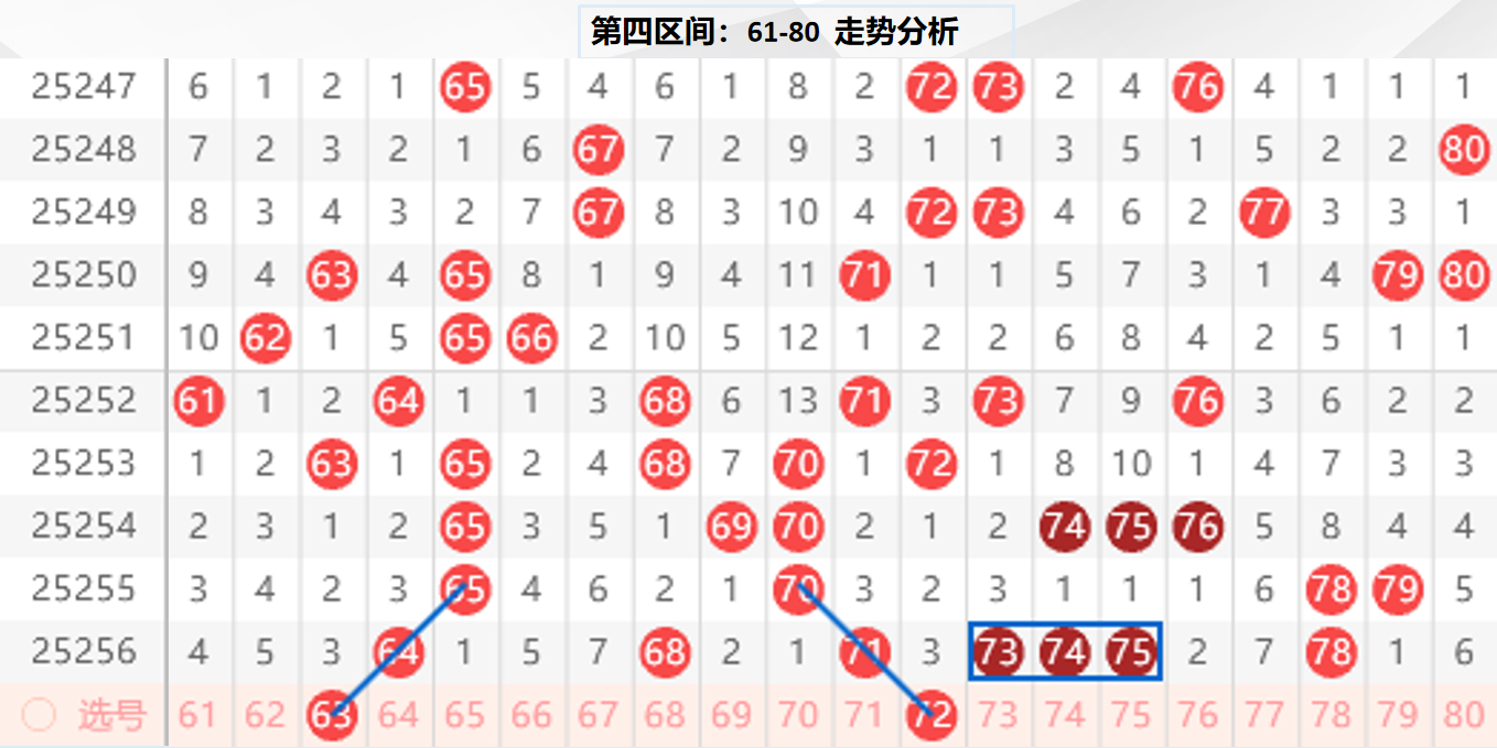 四区分析:【61-80】(走势图标注号码非小黄车大底,请谨慎参考,具体思路将在直播间分享讨论)