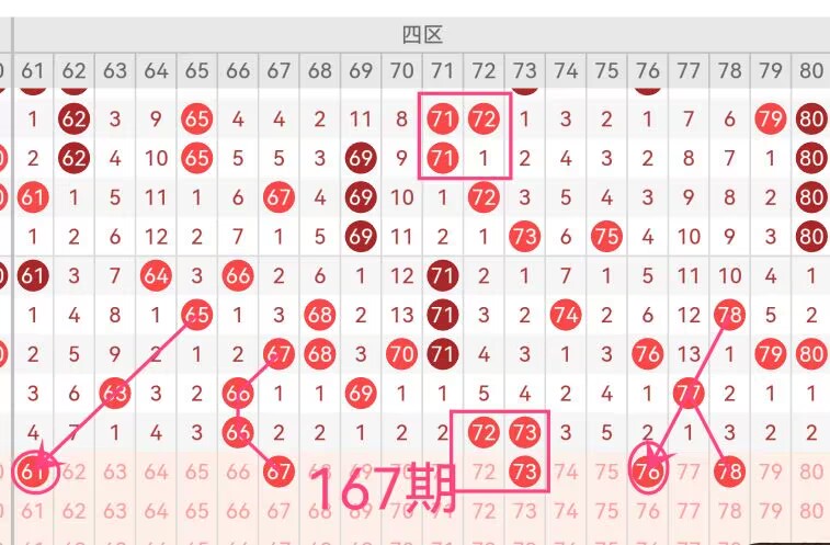 上期福彩快乐8第 2025166期开奖号码为【01 04 13 16 18 22 26 28 33 34 48 49 50 51 52 54 56 66 72 73】,其中大小比为10:10,奇偶比为9:14,和值为766,跨度为72,四区间比为5:5:7:3。下面是对本期对于 01 - 80 的四个区间进行详细分析。