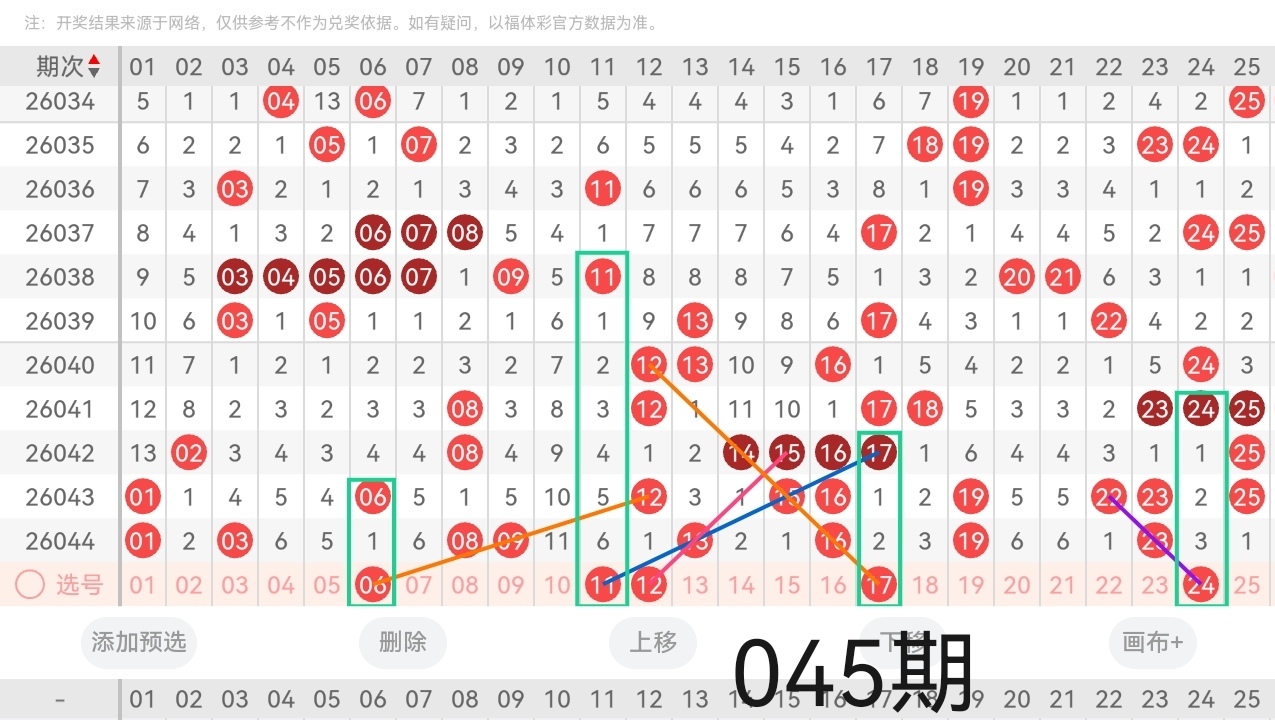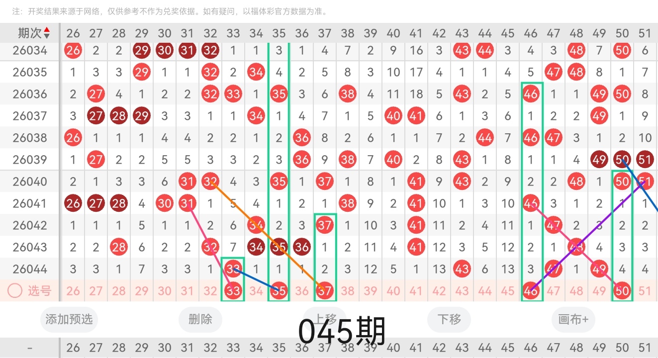 通过以上对上期的简单回顾,下面进入2026045期(下面简称本期)的选号分析: