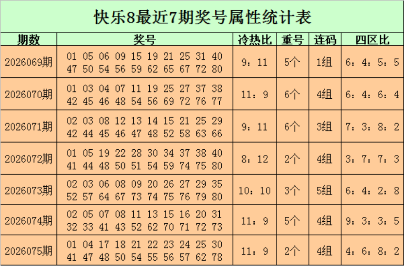 红姐快乐8第2026076期:龙头精选03,冷热比4:16