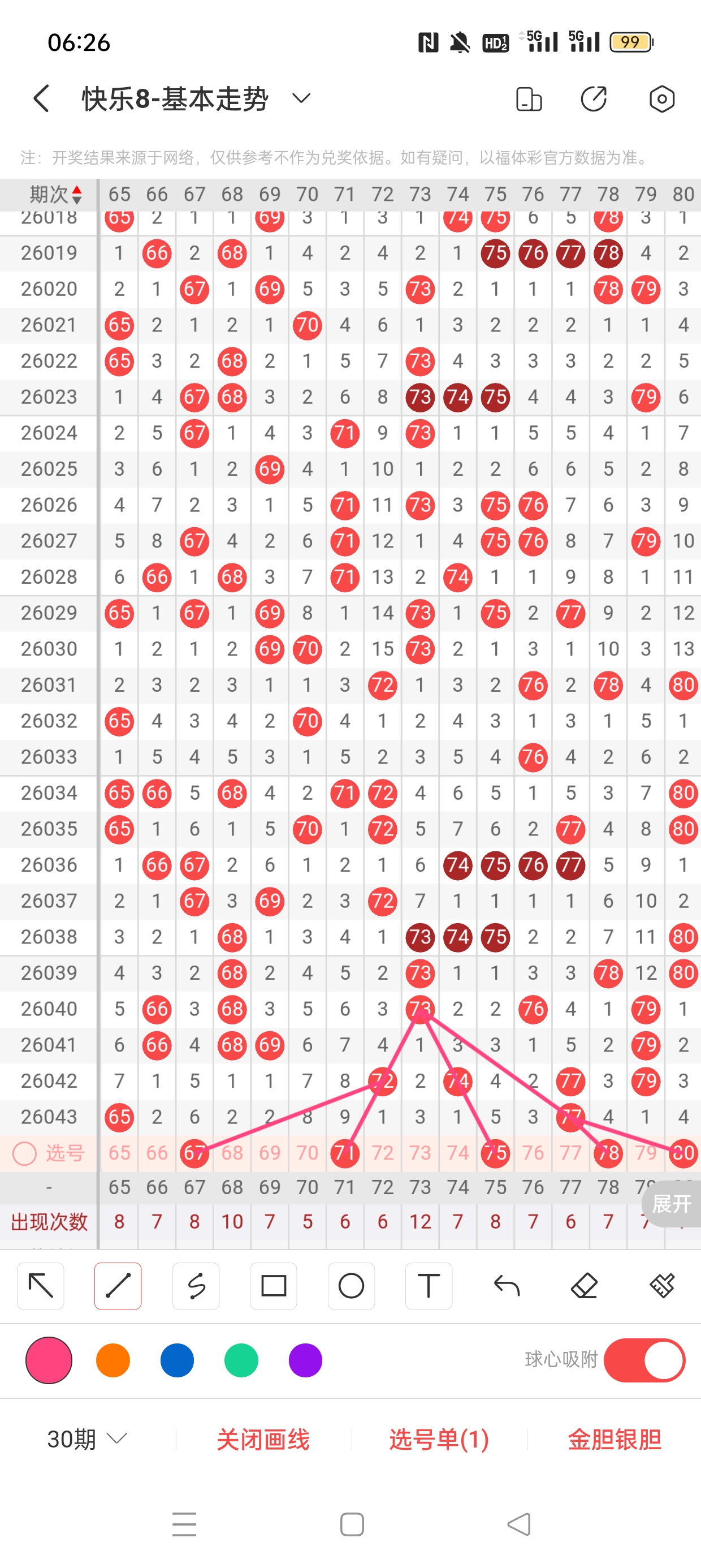 6、分区法:快乐8共分为4个区,一区:1-20,二区:21-40,三区:41-60,四区:61-80。