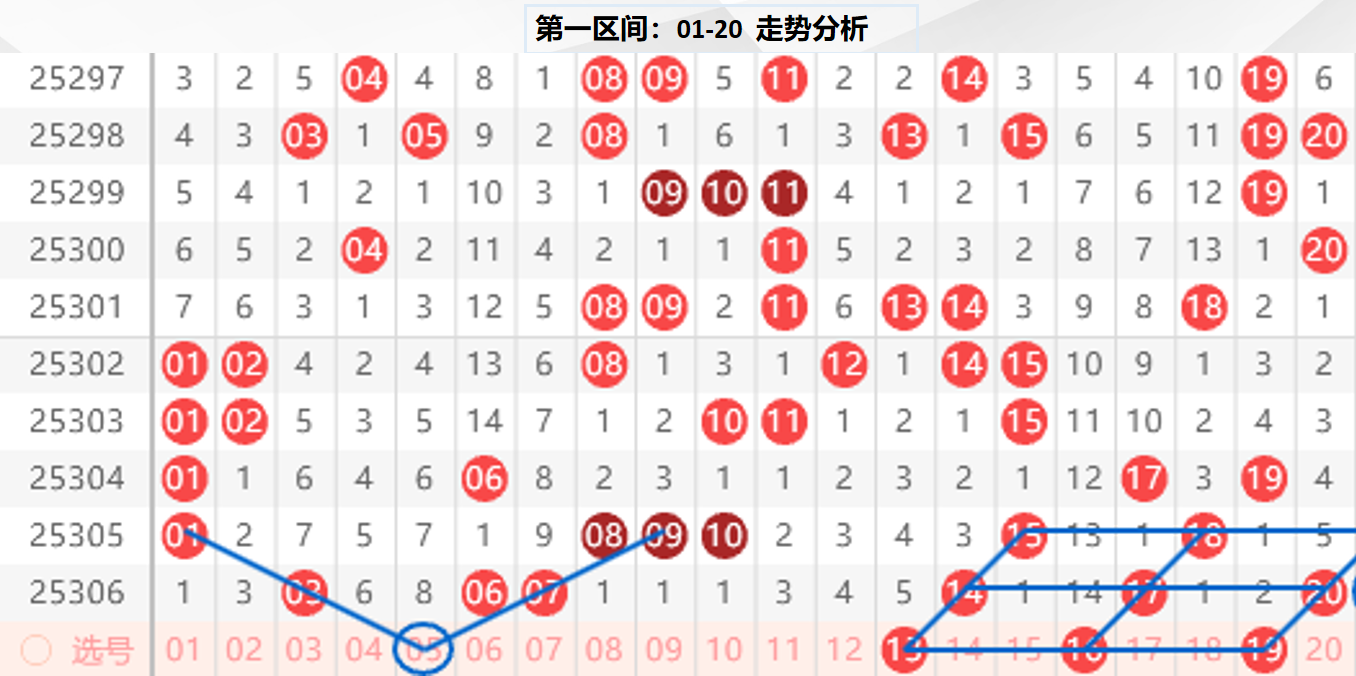 一区分析:【01-20】(走势图标注号码非小黄车大底,请谨慎参考,具体思路将在直播间分享讨论)