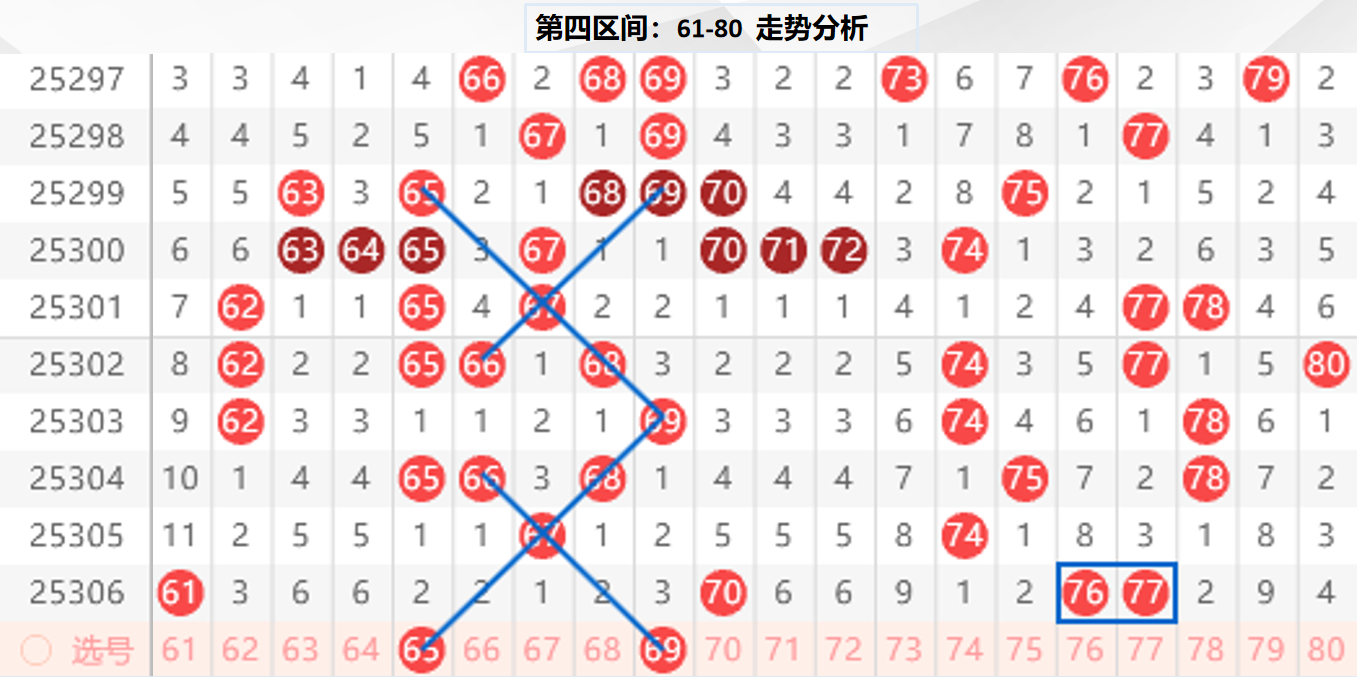 四区分析:【61-80】(走势图标注号码非小黄车大底,请谨慎参考,具体思路将在直播间分享讨论)