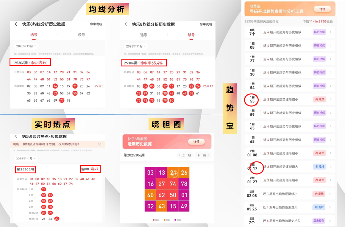 上期会员工具均线分析杀号正确率65.4%,选号命中选五,利用SVIP会员工具中的均线分析杀号和选号与实时热点、绕胆图配合,可增加每期的中奖概率,如有需要请点击#3号链接办理SVIP会员,当日办理会员可免费查看当期小黄车文章及选号方案。