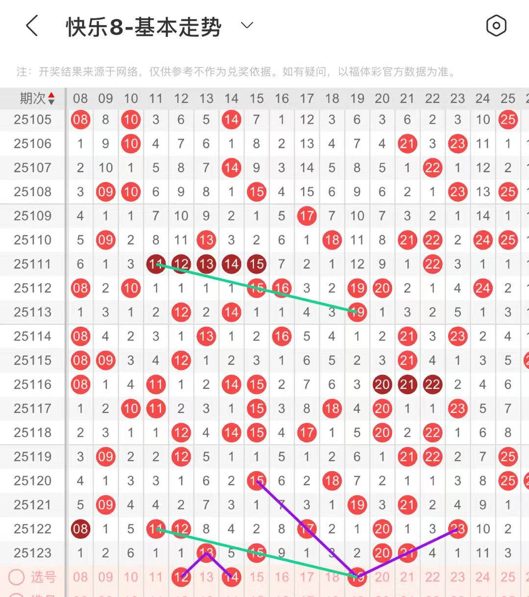 11-20区:本区间上期开出了三个号码,从号码走势图上看,该区现属于温热区,本期看好该区号码持续回补,出号个数应该在三个号码左右。重点关注前半区号码回补。本期有出号走势的号码有12.14号,直接做分边出号考虑,19号,多重走势出号。