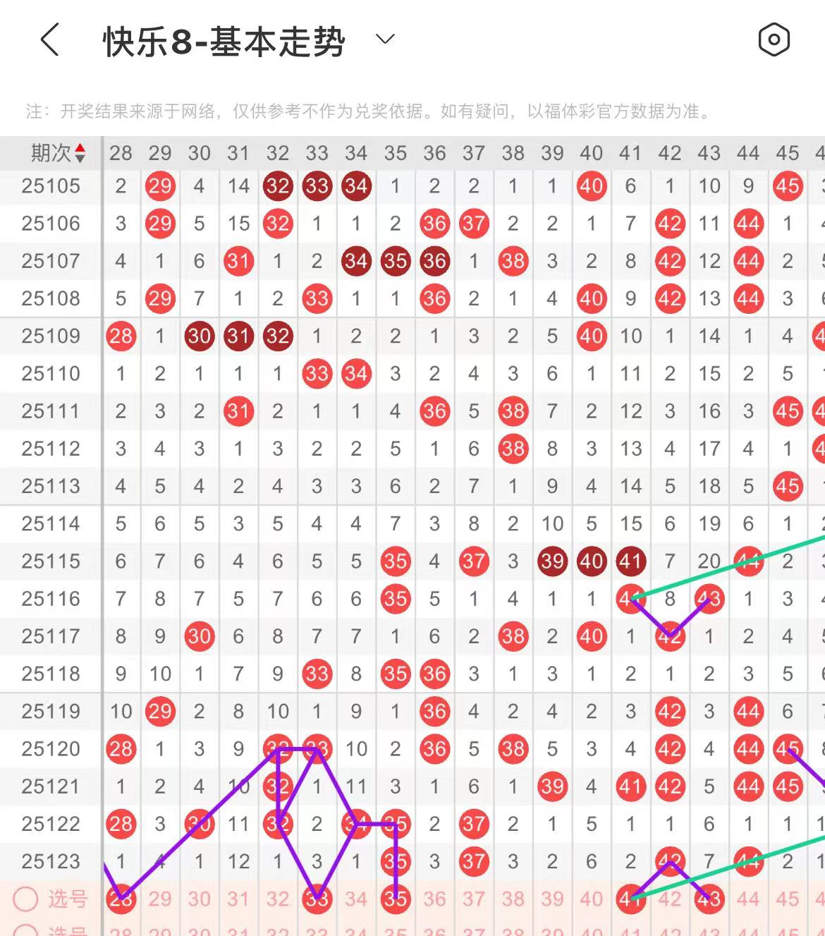 21-30区:本区间上期开出了一个号码,从号码走势图上看,本期可参考的号码走势甚少,在选号上需谨慎,重点关注区中号码回补,出号个数应该在两个号码左右。本期有出号走势的号码有28号,双线斜连出号走势,防26.28同出的可能。
