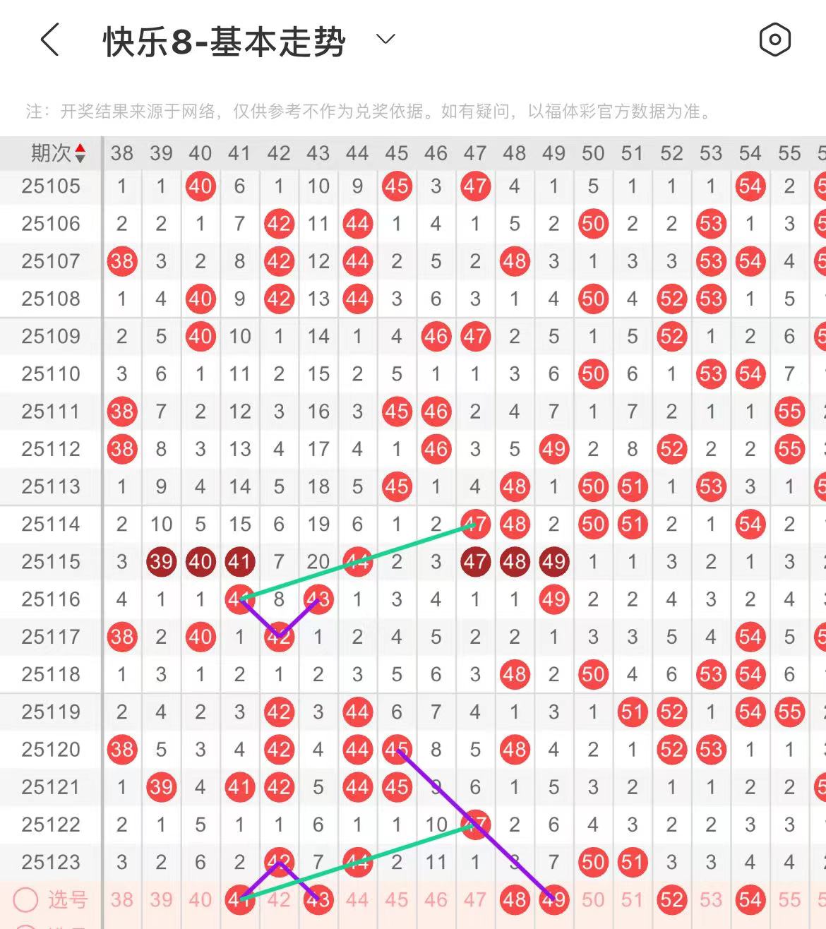 41-50区:本区间上期开出了三个号码,从号码走势图上看,该区现属于温热区,本期号码走势比较明了,出号个数应该在三个号码左右。本期有出号走势的号码有41.43号,直接做分边出号考虑,49号,斜连出号走势。
